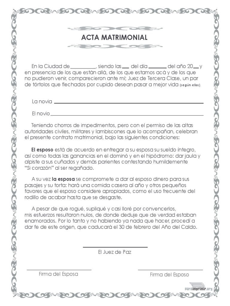 Formato De Acta De Matrimonio Acta De Matrimonio Juegos De Matrimonio Matrimonio