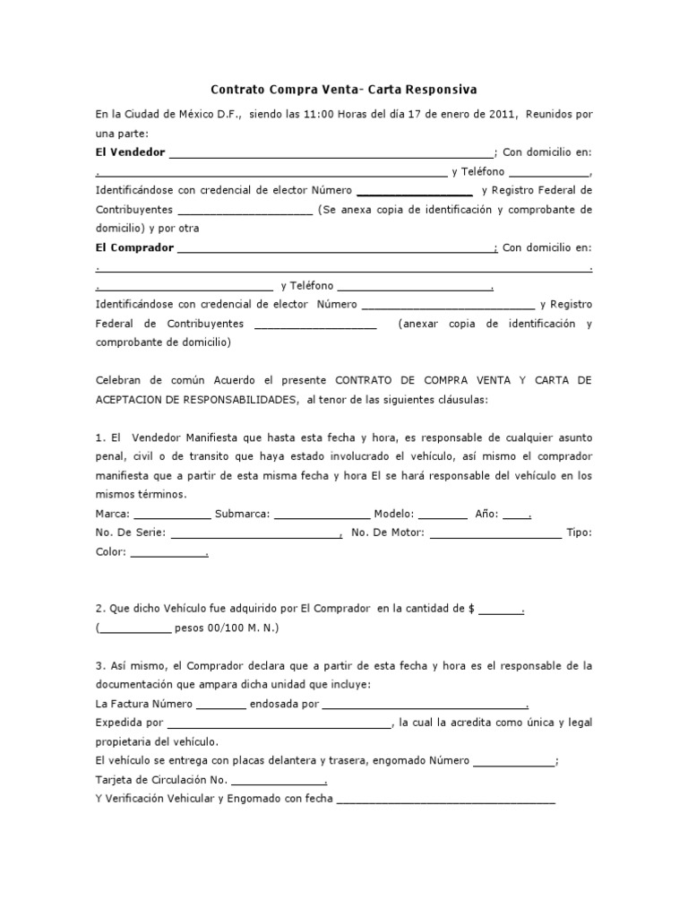Fácil de editar con Microsoft Office Word. Las cartas de compra venta también son conocidas como cartas responsivas en ellas se detallan el bien o artículo que adquiere el comprador de parte del vendedor y se establecen las cláusulas bajo las cuales se pagará si es al contado o en parcialidades el tipo de interés etc Este tipo de documento siempre sirve como complemento a los contratos de compra venta. Tipos de Comprobantes Fiscales Facturas de Crédito Fiscal 01 Ejemplo Este tipo de comprobante se debe utilizar para registrar las transacciones comerciales de compra y venta de bienes y servicios permitiéndole al comprador o usuario que lo solicite sustentar gastos y costos o.
