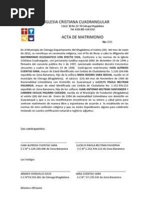 Acta De Matrimonio 006 Matrimonio