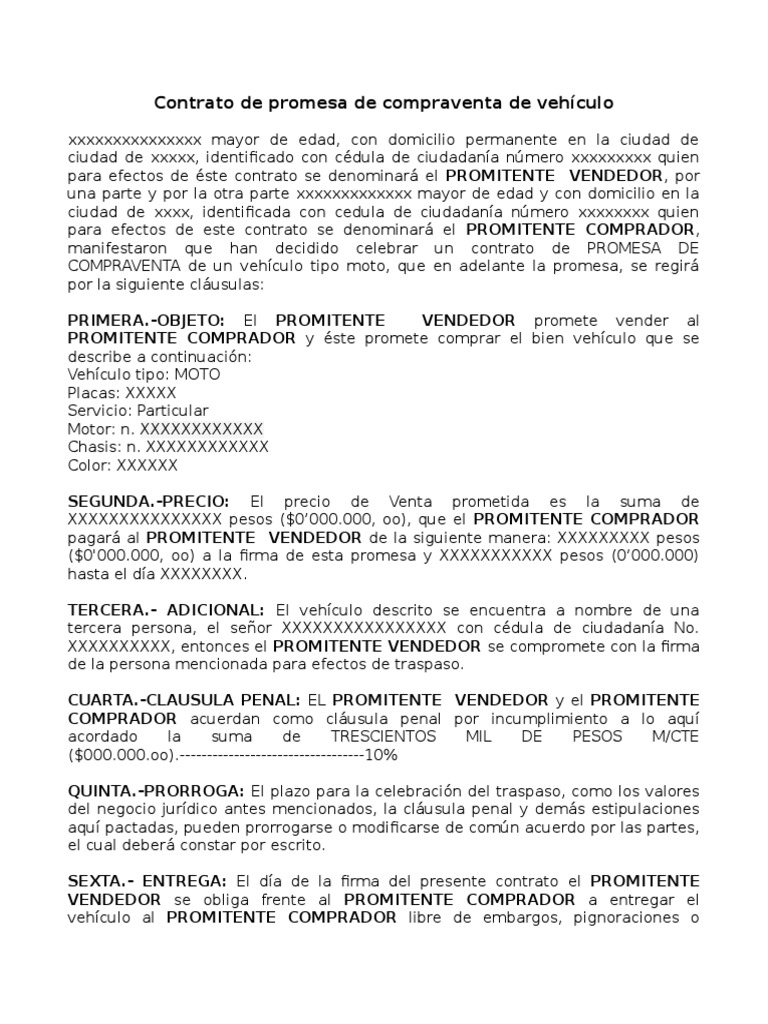 Ejemplo Contrato De Promesa De Compraventa De Vehiculo O Motocicleta Pdf Justicia Crimen Y Violencia