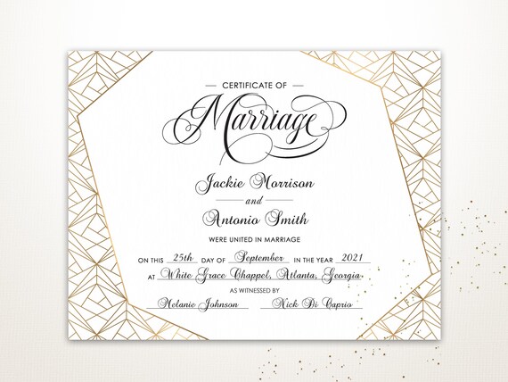 Certificado Elegante De Matrimonio Plantilla Editable Etsy