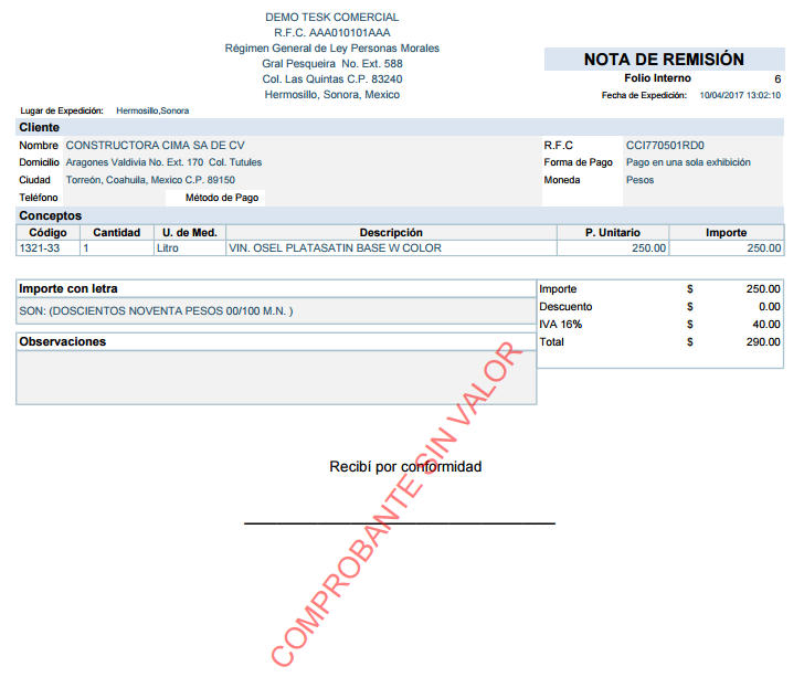 Nota De Remision 1 4 De Carta Impresa Desde 249 Pesos Pop Mexico