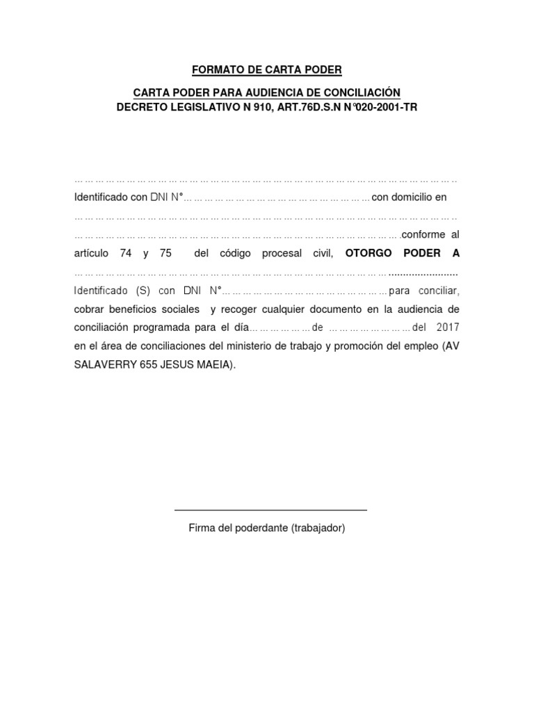 Carta Poder Formatos Y Ejemplos Word Para Llenar E Imprimir