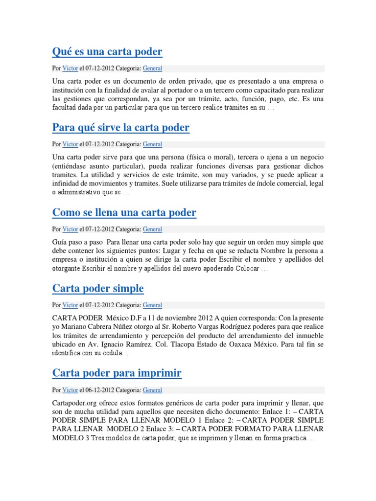 INFORMACIÓN Y FORMATO DE CARTA PODER EN MÉXICO Cuando el interés de algún negocio no excede cierto monto o cuando el mandato es otorgado para un trámite muy. Llenar una carta poder simple es sencillo.
