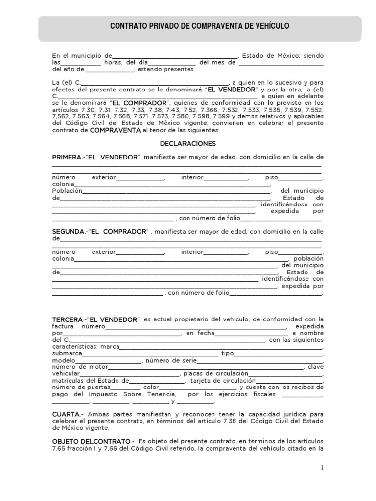 Modelo De Contrato De Compraventa De Vehiculo En Word