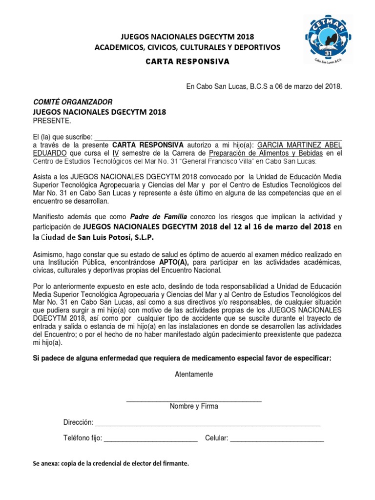 Este tipo de cartas se utilizan comúnmente cuando se otorga permiso a. Redactar carta deslindando responsabilidades como hacer una carta para deslindar Ejemplo de Carta responsiva para menores de edad y la aceptación de las. A través de la presente carta responsiva hago constar que estoy enterada e informada del programa Visita Corea que se realizará del 5 de octubre al 20 de octubre del presente al que asistirá mi hijo Diego Hernández Alcántara de 17 años de edad por lo que manifiesto expresamente como su padre y tutor que conozco los riesgos que dicho.