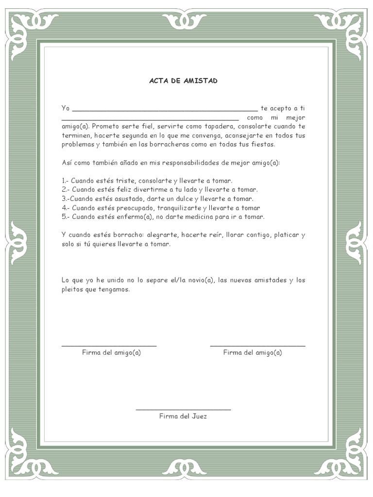 Acta de matrimonio para kermess. CLAUSULAS PRIMERA- LA PAREJA se compromete a definirse como novios entre ellos en público y en redes sociales existentes o por existir. Debes tener en cuenta que amabas partes.