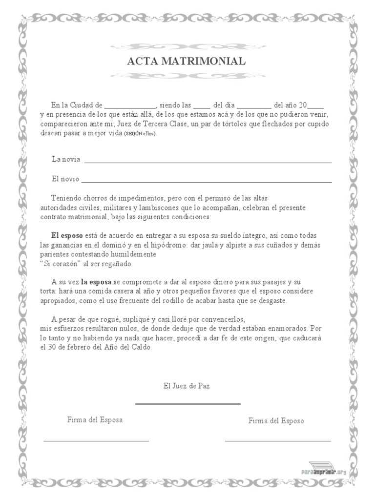 Acta De Matrimonio De Broma Para Imprimir Pdf