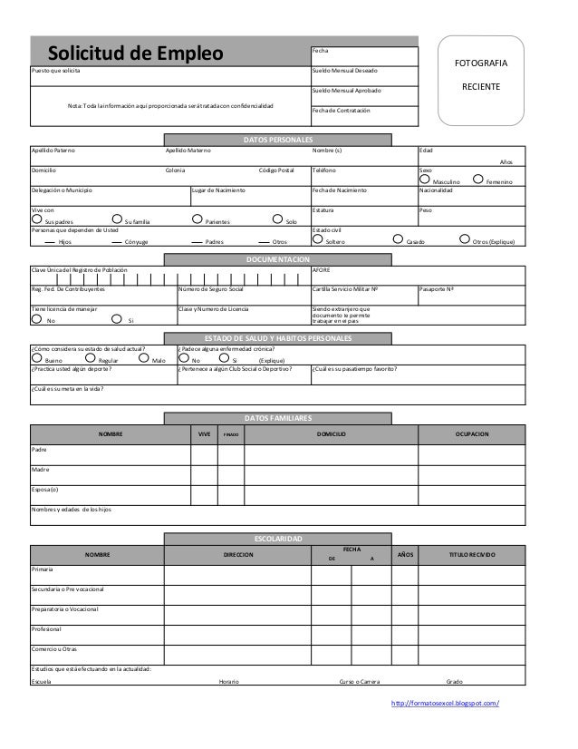 Solicitud De Empleo Pdf Word Y Excel Formato Para Rellenar