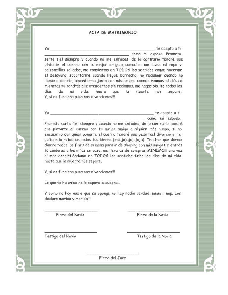 Acta De Matrimonio De Broma Para Imprimir En Pdf 2021