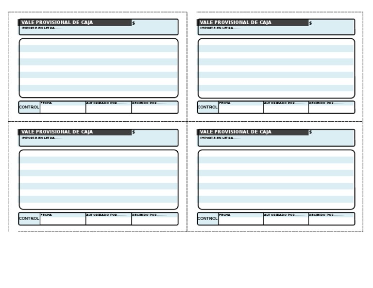 Son 6 vales de caja en cada hoja se imprimen se recortan para separarlos y deben de ser muy claro a la hora de llenar para evitar malos entendidos en caso de ser un gasto fuerte se recomienda utilizar una transferencia electrónica un cheque o el uso de la tarjeta de crédito de la institución. Anticipos para compras de bienes o servicios. FORMAS DE NEGOCIO OFICINA VALES Etiqueta.
