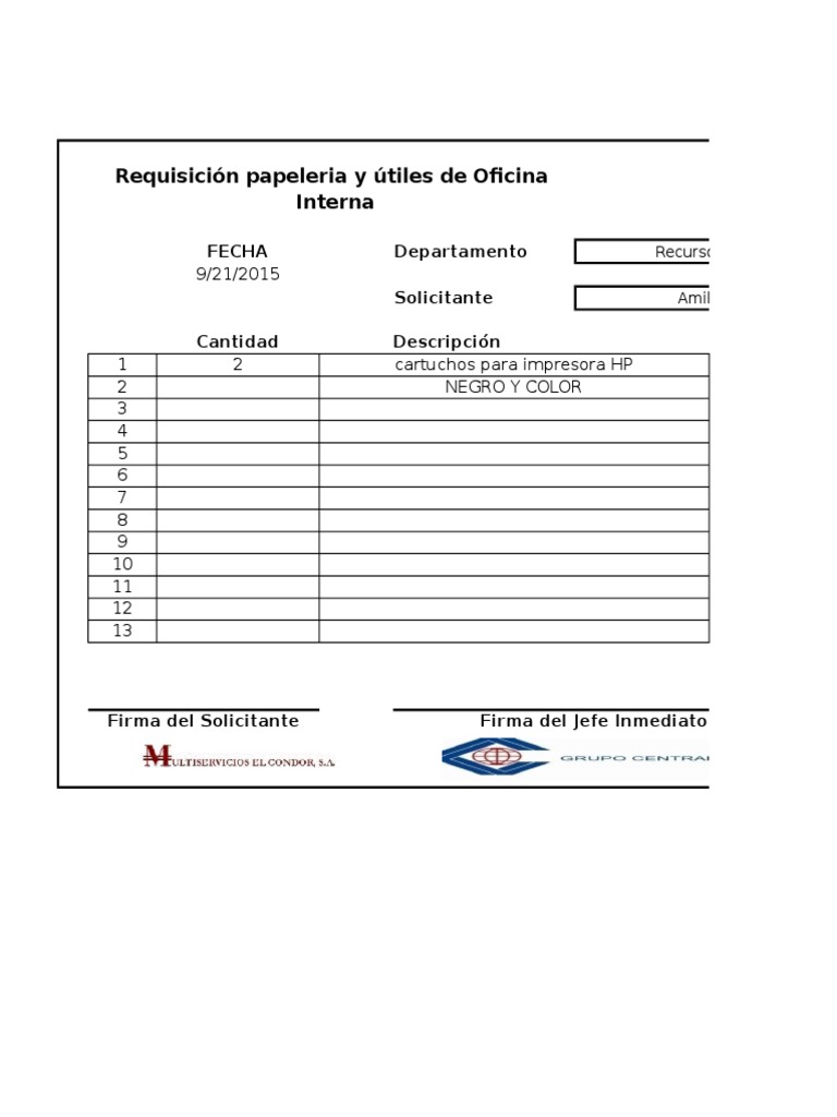 Formato Solicitud De Papeleria