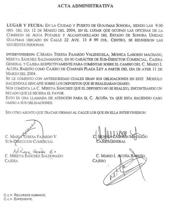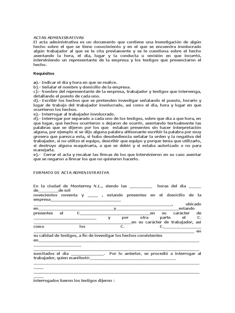 Acta Administrativa por Ausencia Injustificada. Ejemplo de acta administrativa por faltas. 2- Una vez obtenidas las reseñas antes.