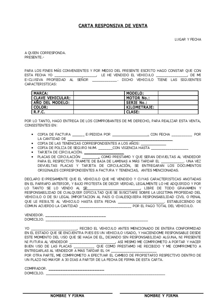 Como Llenar Una Carta Responsiva De Compra Venta De Vehiculos