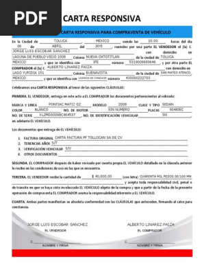 Carta Responsiva De Compra Venta De Vehiculos Pdf Easky