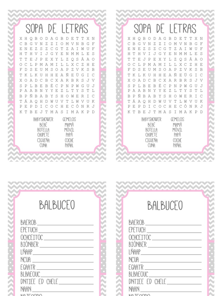 Sopa de letras para baby shower para imprimir pdf. 18-ene-2019 - Buy Girl Baby Shower Party Decorations Pink White and Gold Theme Decor Set with Banners Balloons Poms Lanterns Tassels and Sash 42 Pieces. Baby shower games in spanish. Las tarjetas están listas para imprimir en formato Pdf.