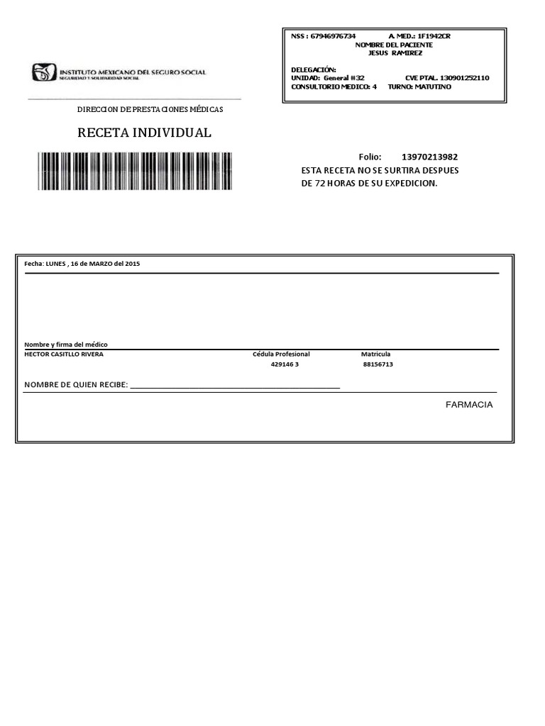 En sustitución del salario equivalente al 100 del salario registrado en el IMSS al momento de sufrir el riesgo. Este Formato de Receta Médica es recomendado en aquellas ocasiones en las que tenemos a un maestro demasiado estricto y no nos deja faltar a ninguna de sus clases. Lunes 9 de enerode 2017 1156 Cloranfenicol 100 mg.