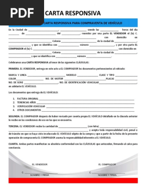 Carta Responsiva De Compra Venta De Vehiculos Pdf Easky